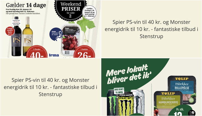 Hos Min Købmand kan du få Monster energidrik i flere varianter til en fantastisk pris på 10 kr. pr. dåse. Dette tilbud gælder fra fredag den 30. januar til torsdag den 5. februar.